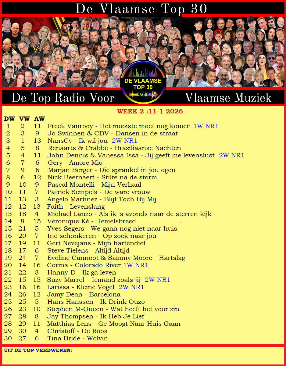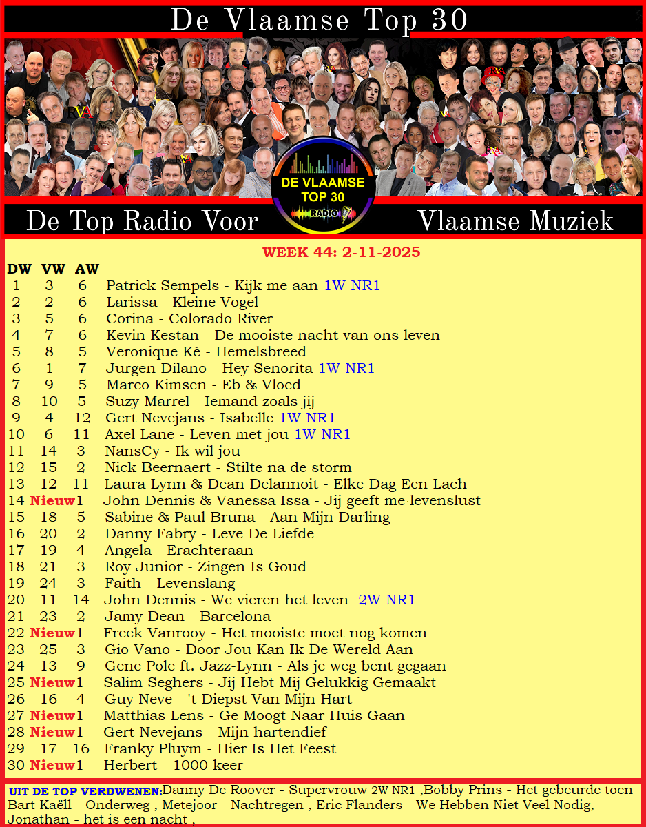 Hier de uitslag van www.devlaamsetop30.be van zondag 02-11-2025