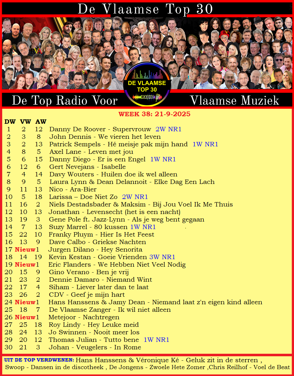 Hier de uitslag van www.devlaamsetop30.be van zondag 21-9-2025