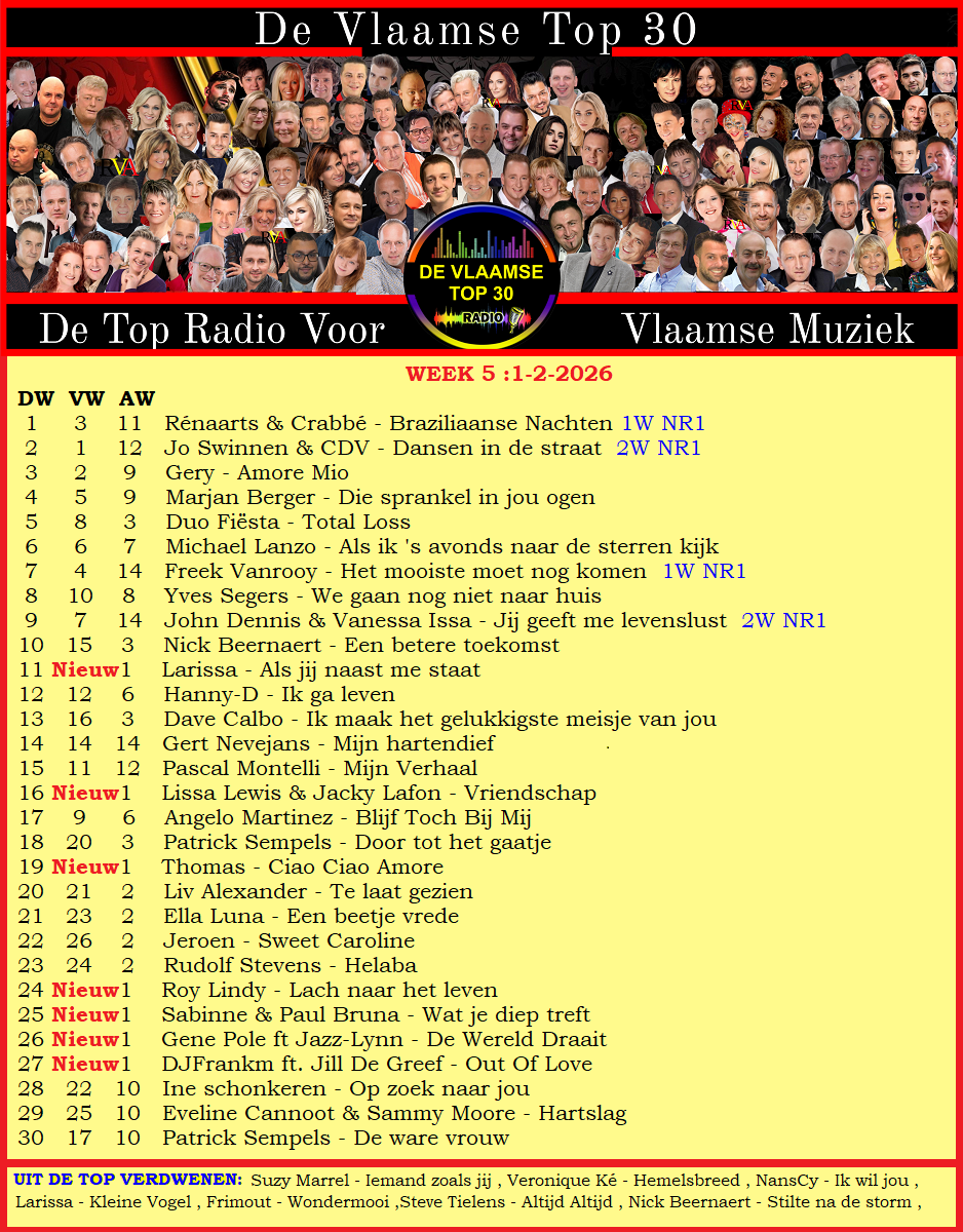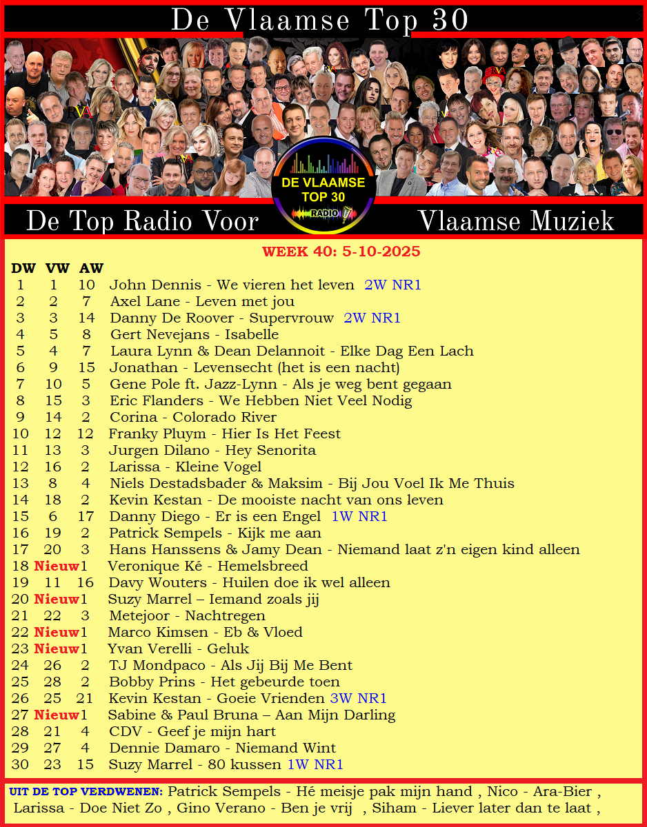 Hier de uitslag van www.devlaamsetop30.be van zondag 5-10-2025