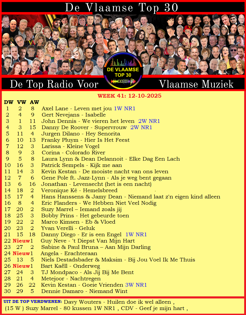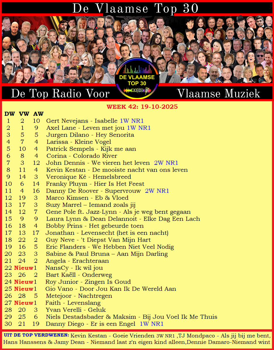 Hier de uitslag van www.devlaamsetop30.be van zondag 19-10-2025