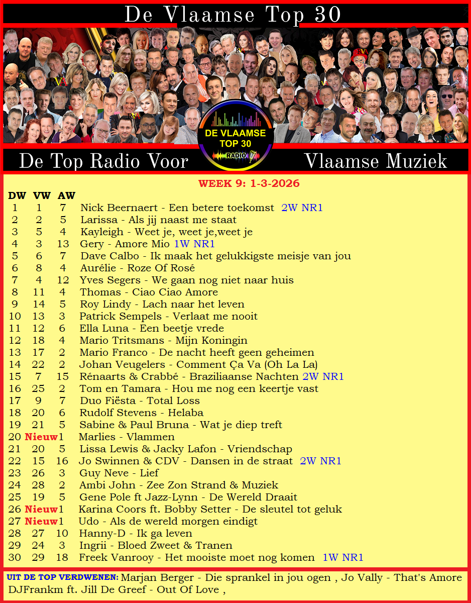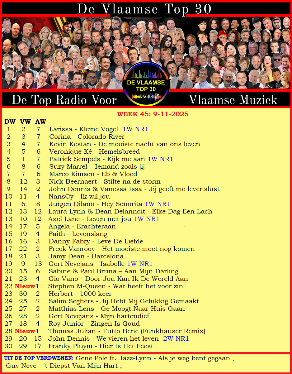 Hier de uitslag van www.devlaamsetop30.be van zondag 09-11-2025