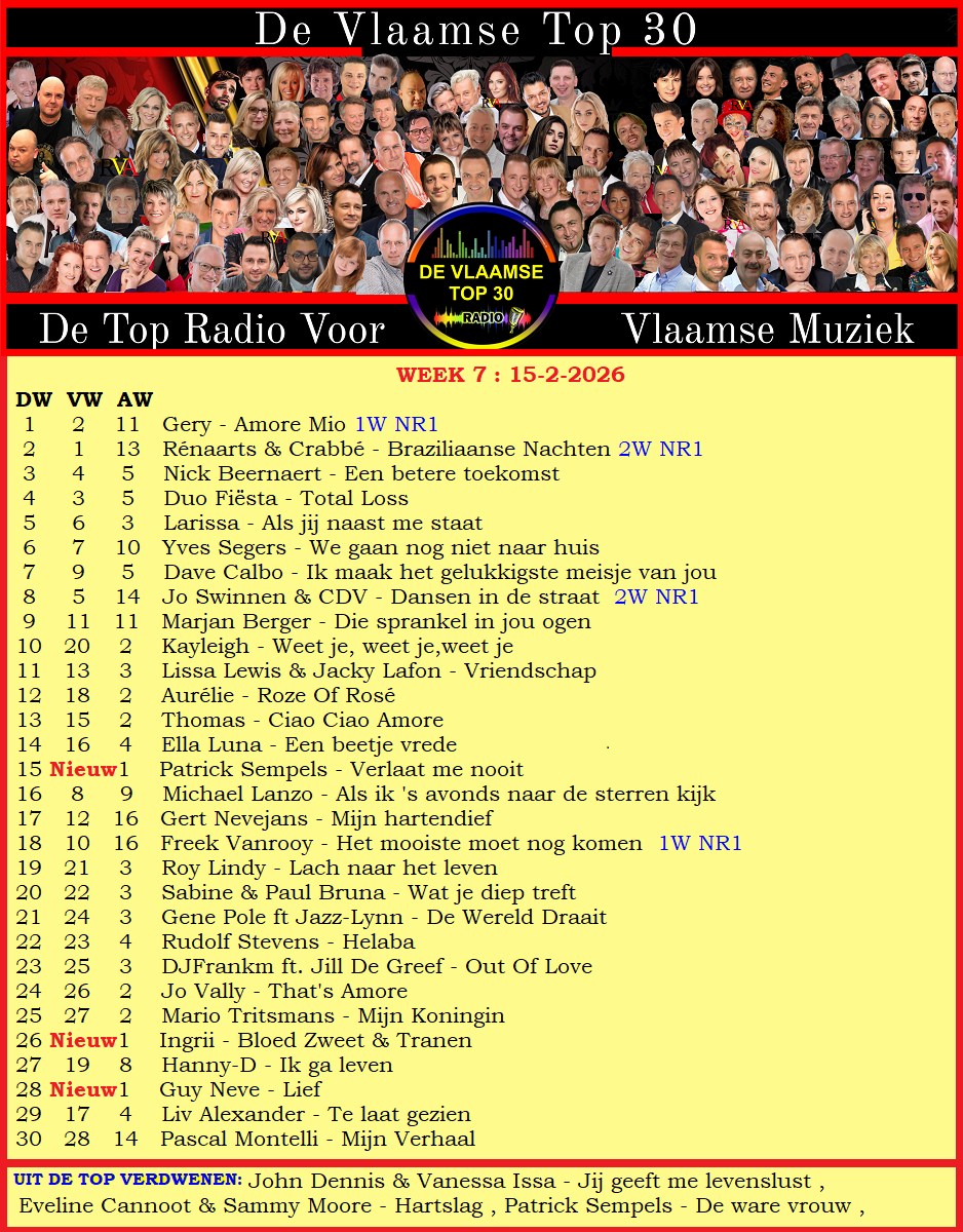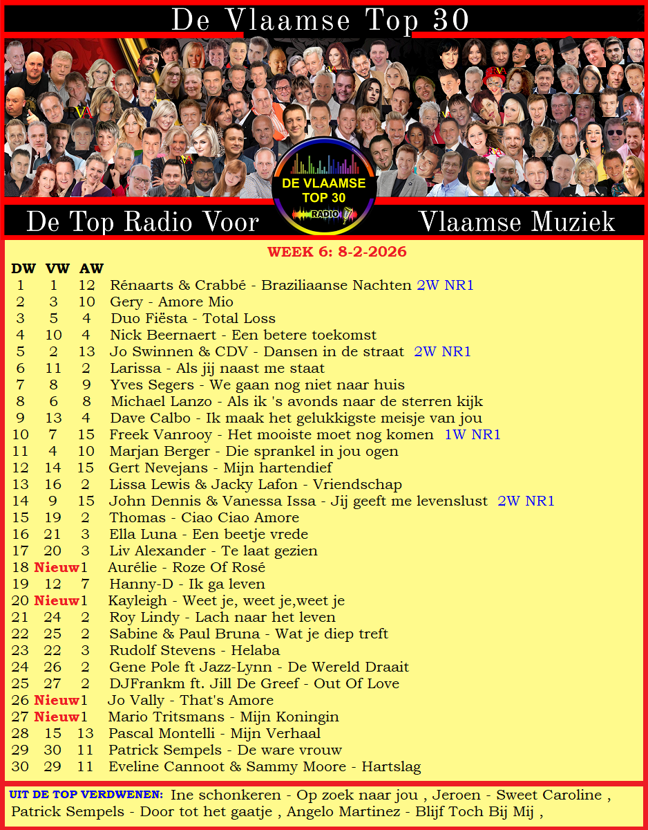 Hier de uitslag van www.devlaamsetop30.be van zondag 6-7-2025